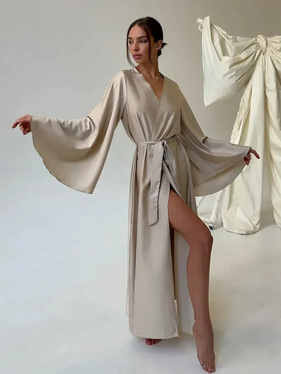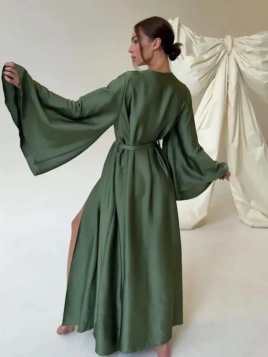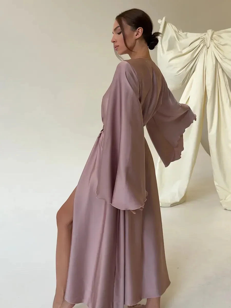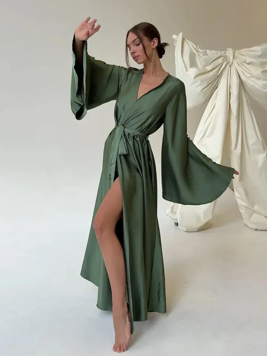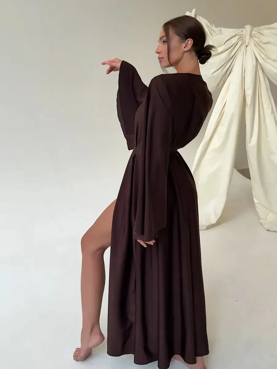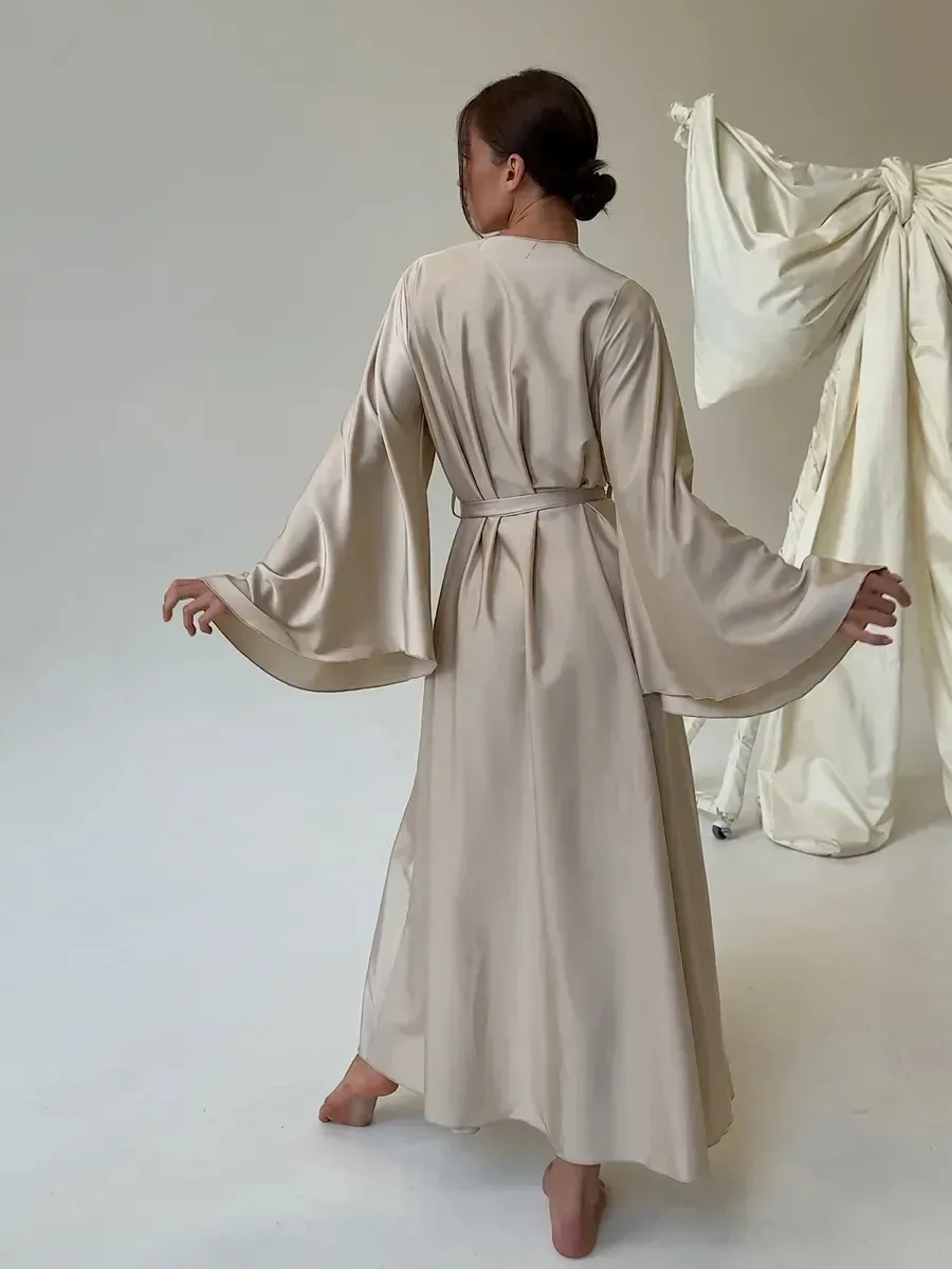 ✨ Robe Satinée de Luxe Femme – Longueur Cheville, Manches Longues