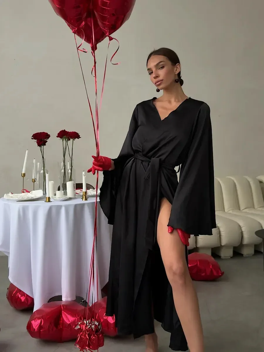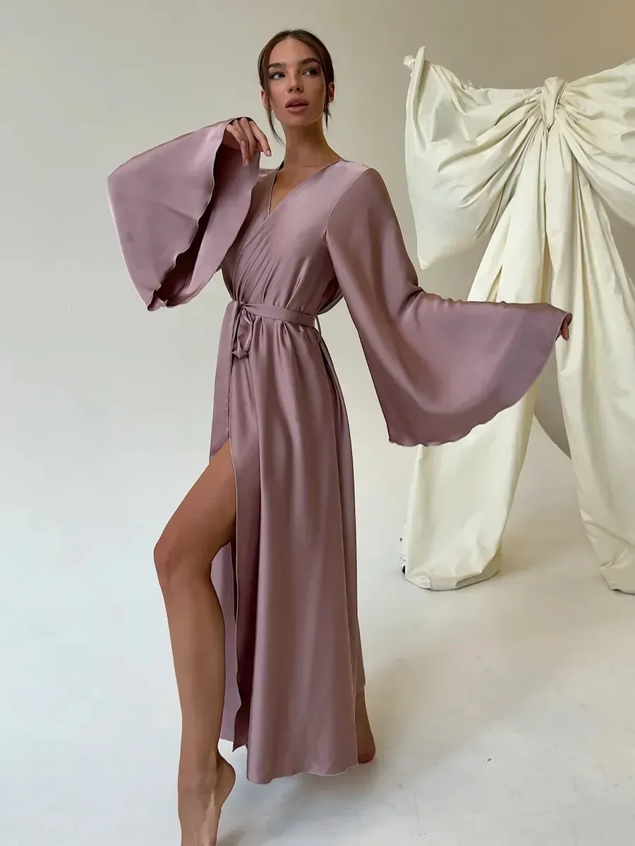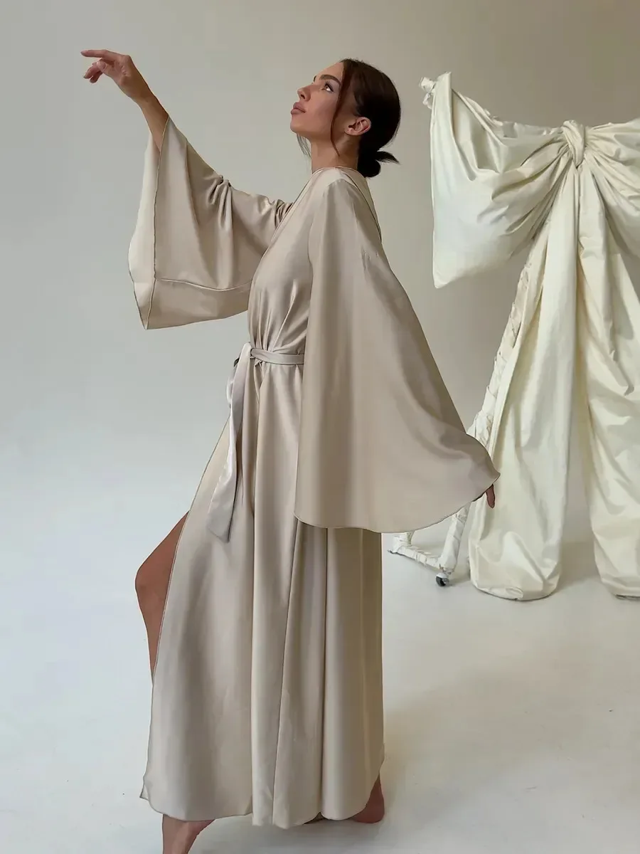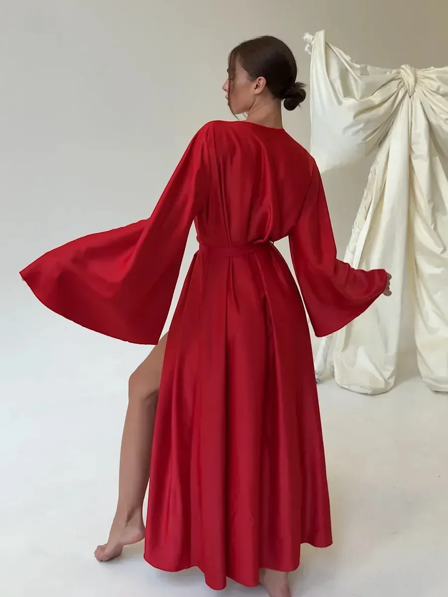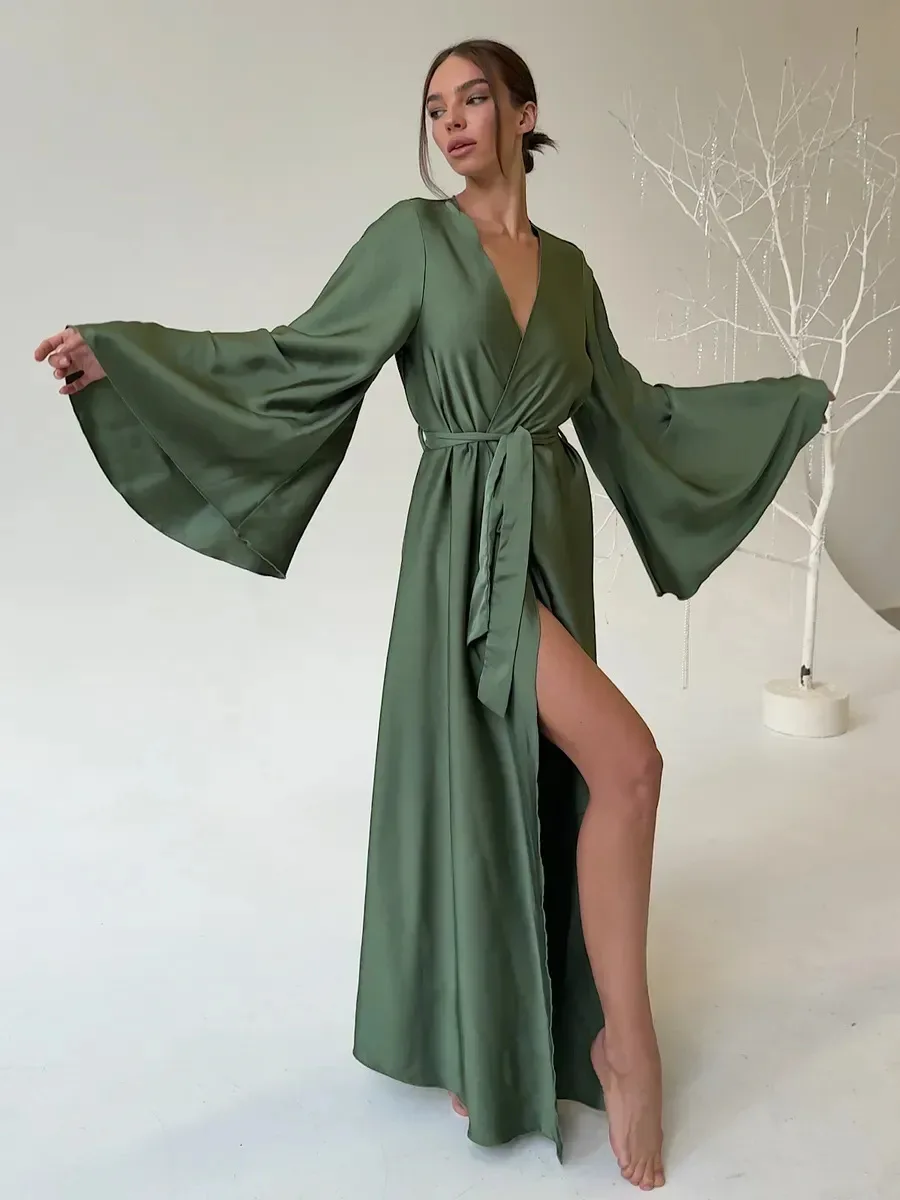 ✨ Robe Satinée de Luxe Femme – Longueur Cheville, Manches Longues