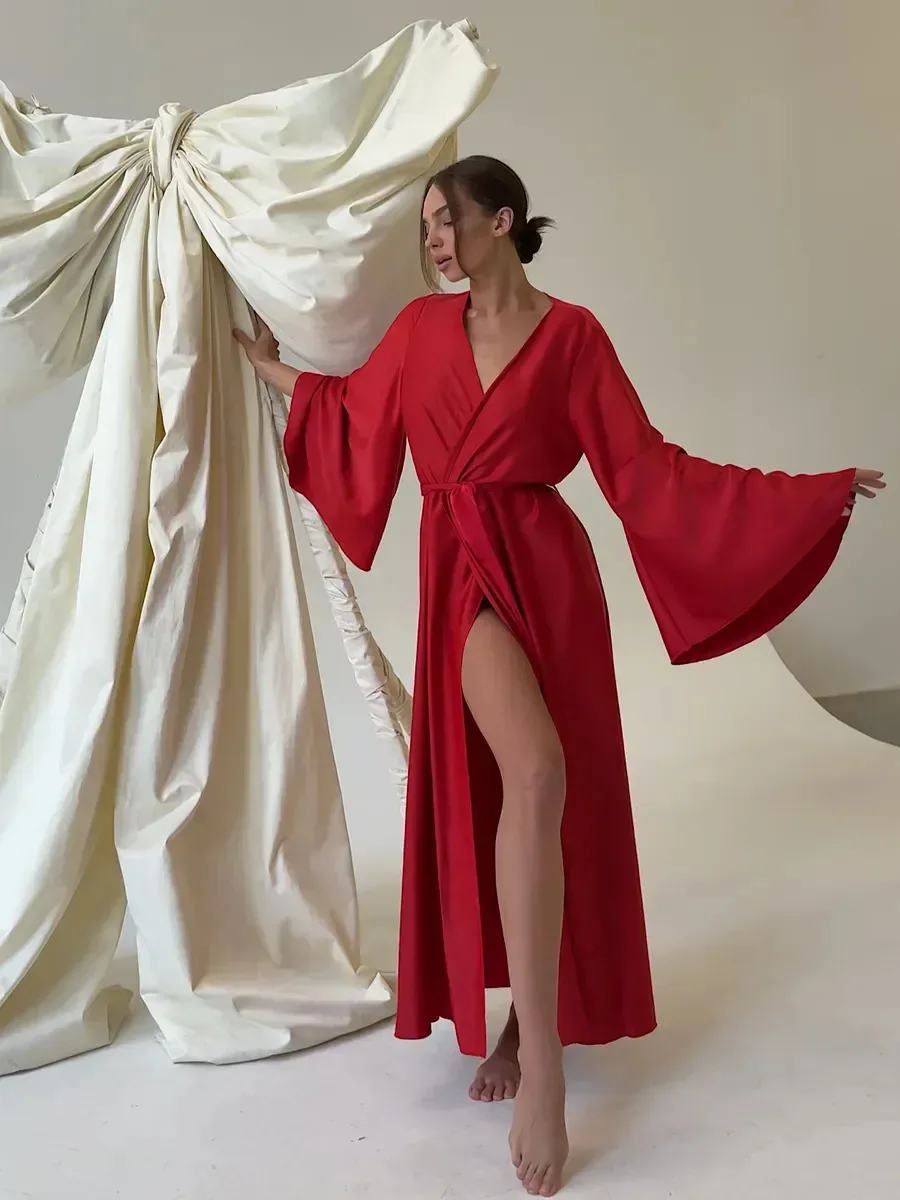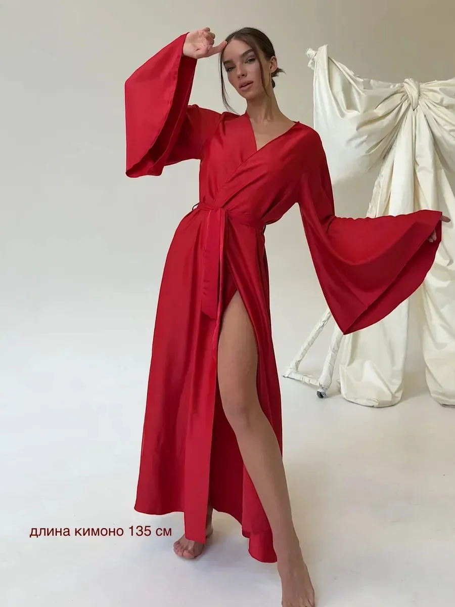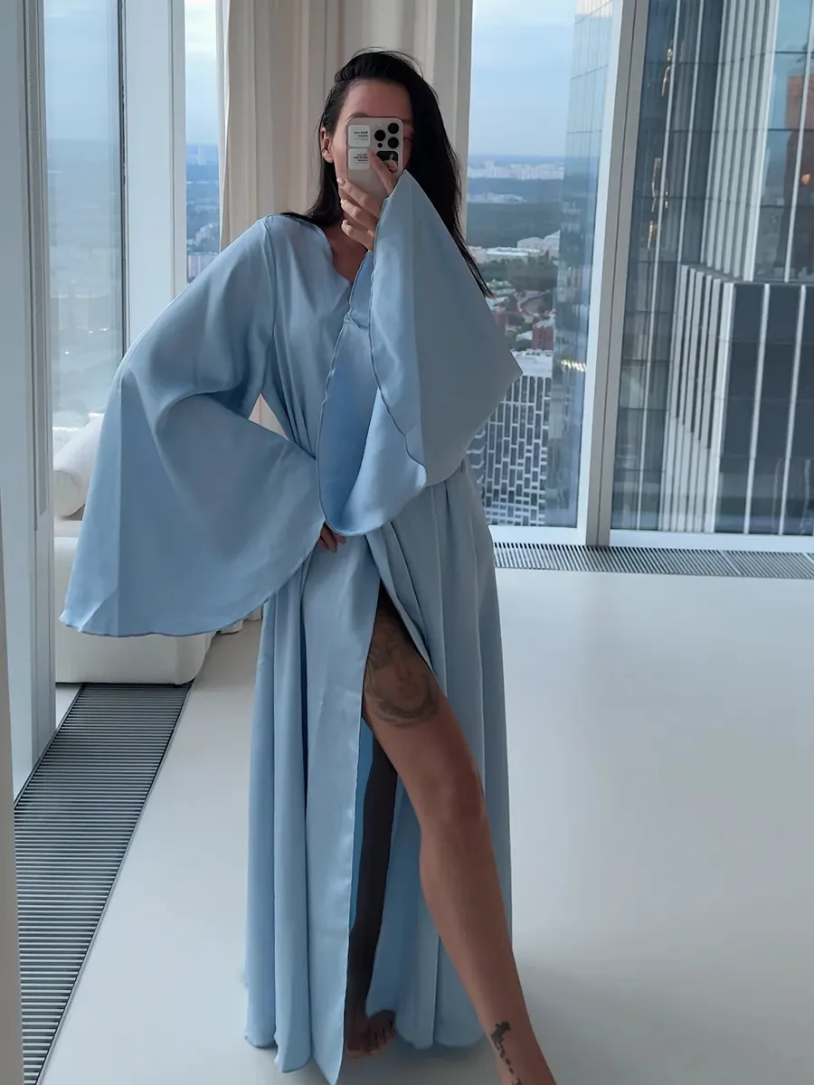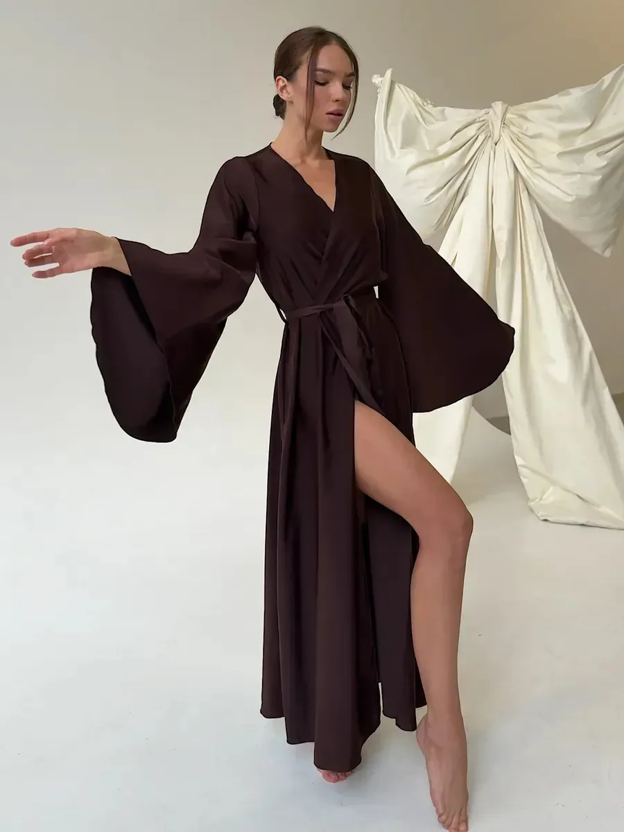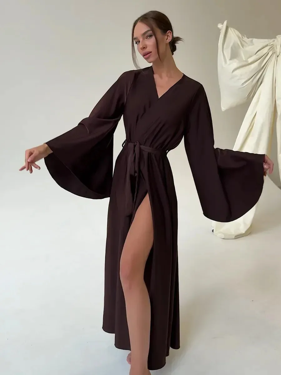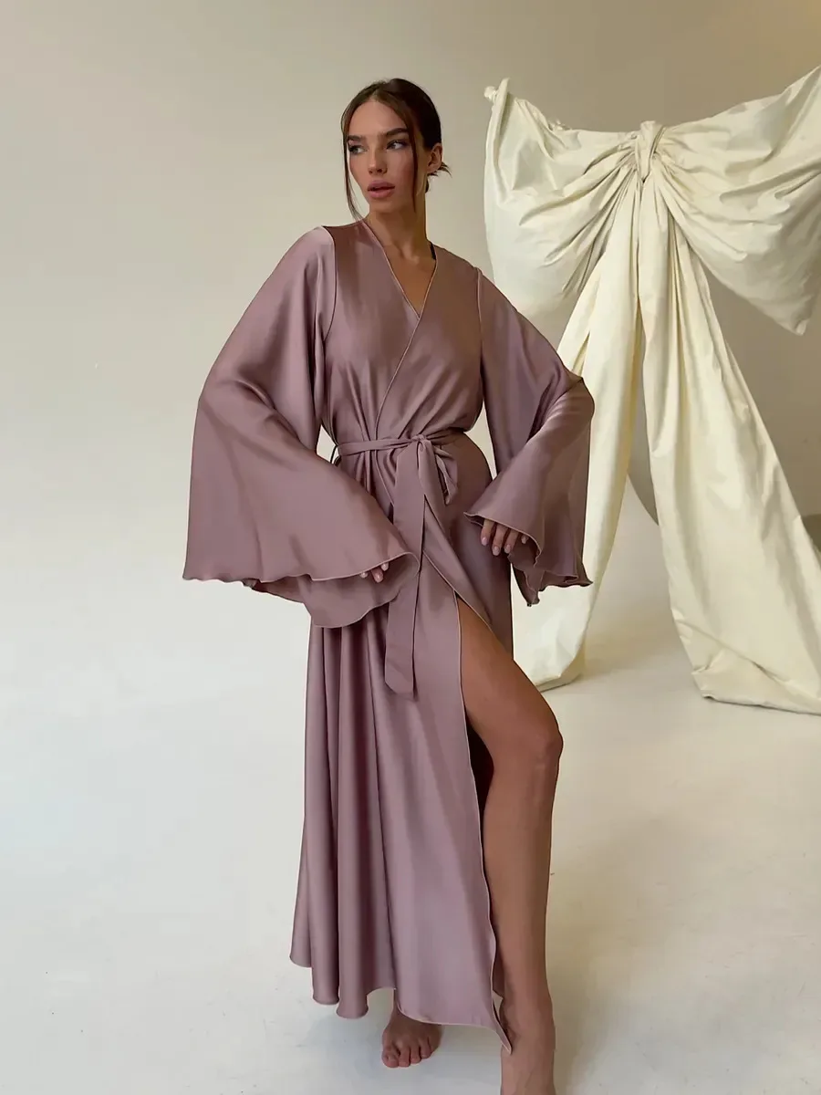 ✨ Robe Satinée de Luxe Femme – Longueur Cheville, Manches Longues